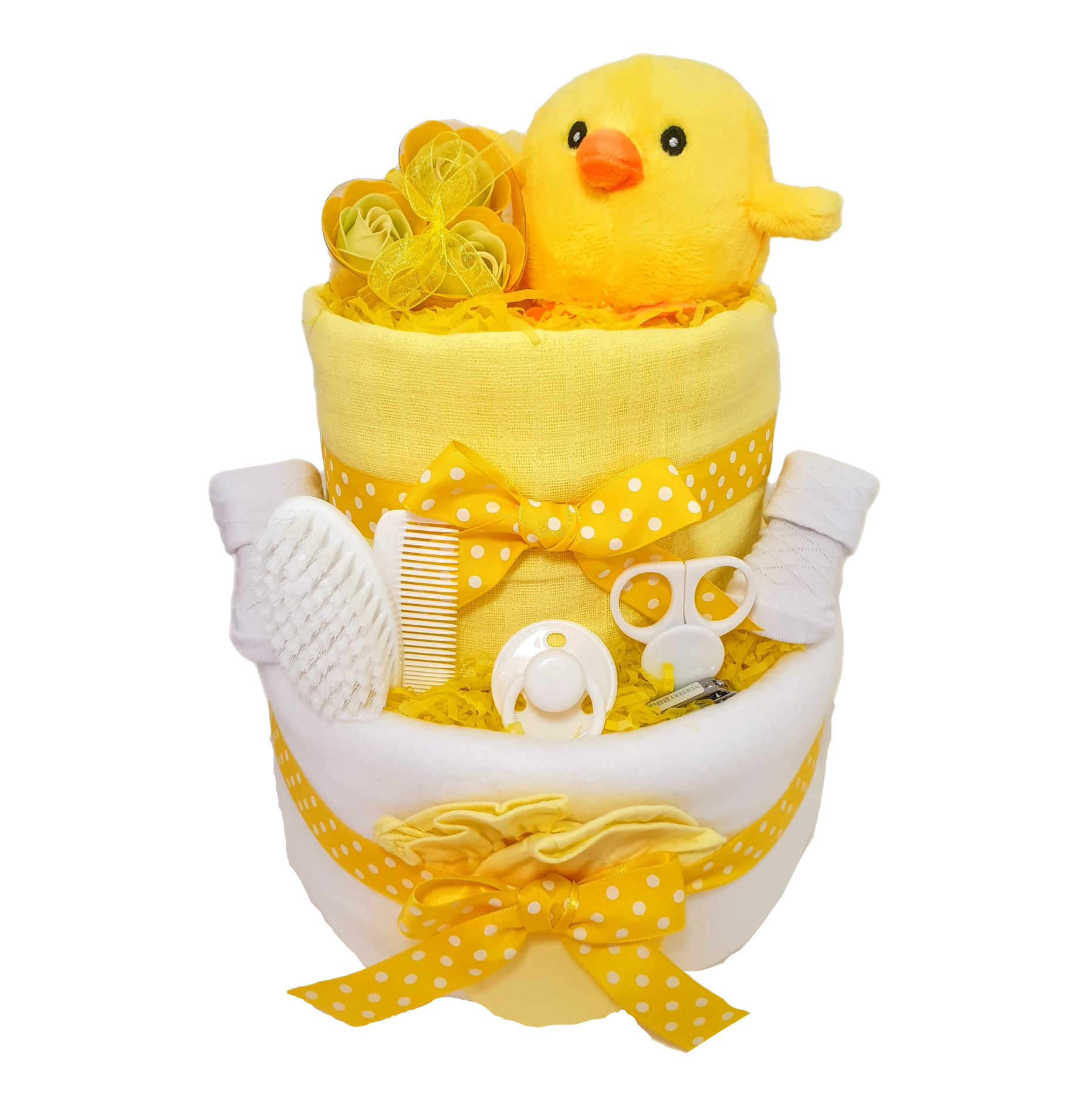 All nappy cakes are made with a base of rolled nappies, tiered to look like a real cake! I use size 3 Pampers so the Nappy Cake can be admired and not instantly taken apart.