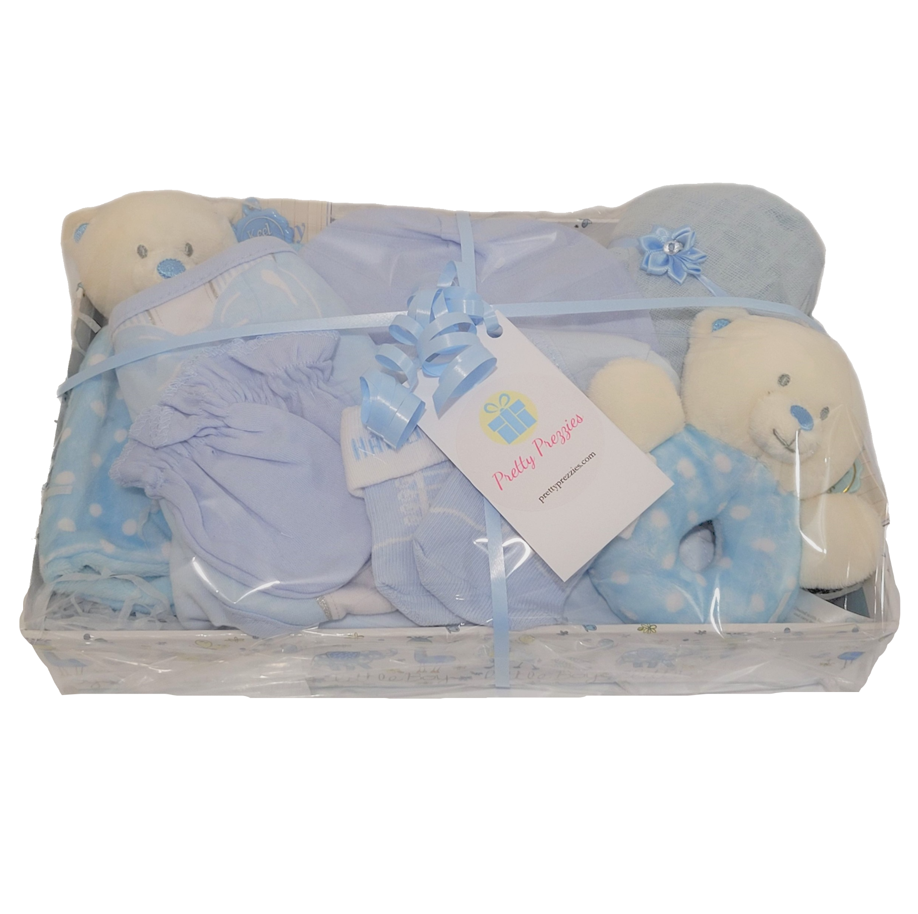 Baby gift hampers are filled with gorgeous new baby items. A perfect present for baby showers, maternity/paternity gifts and welcoming a new baby into the world. Available in colours for boys, girls and in neutral.
