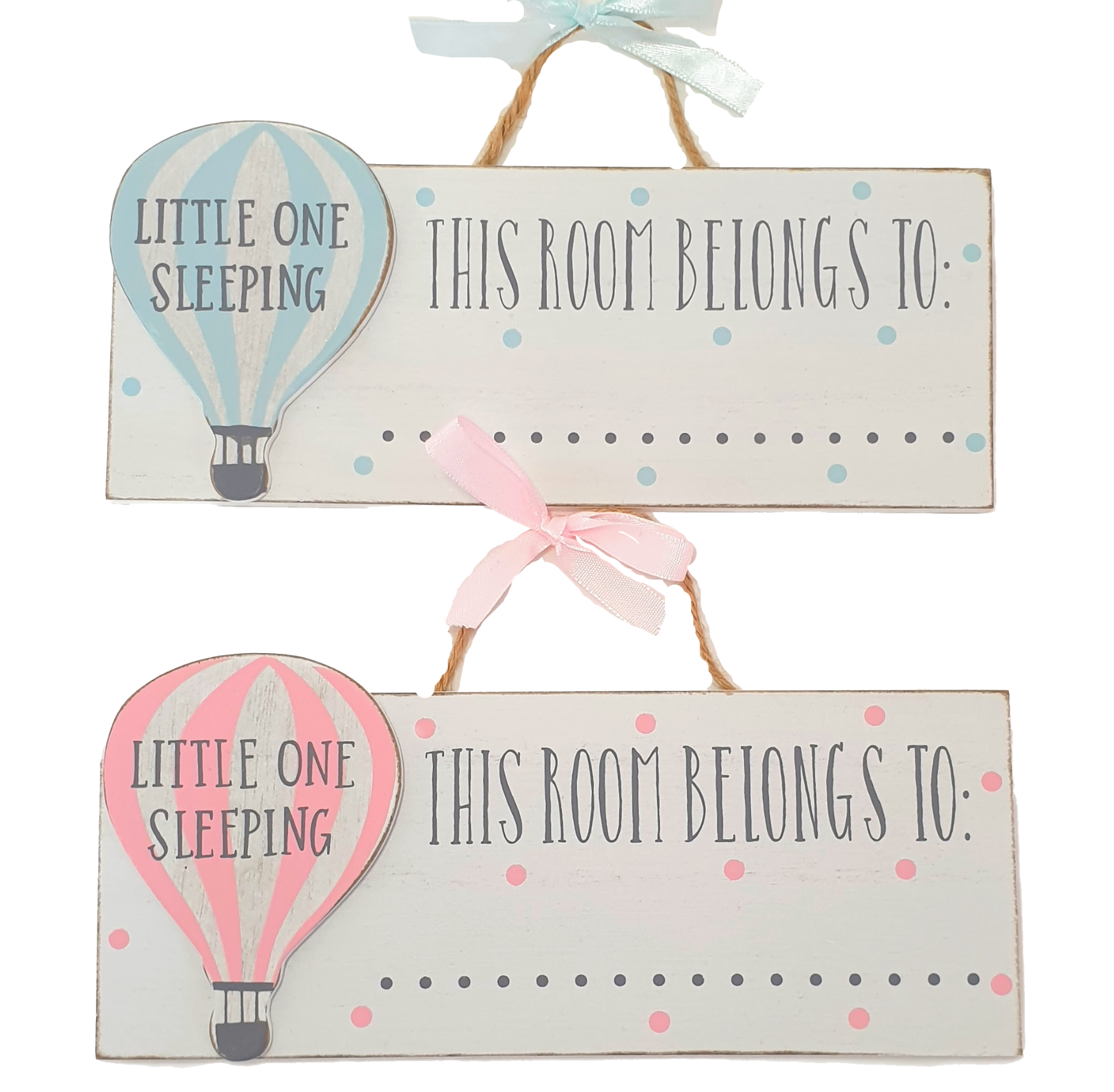 Wooden door plaque with rope. “Little One Sleeping” “This Room Belongs To:……………”
